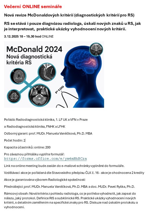 Pořádá: Radiodiagnostická klinika, 1. LF UK a VFN v Praze a Radiodiagnostická klinika, FNHK a Fakultní nemocnice v HK
